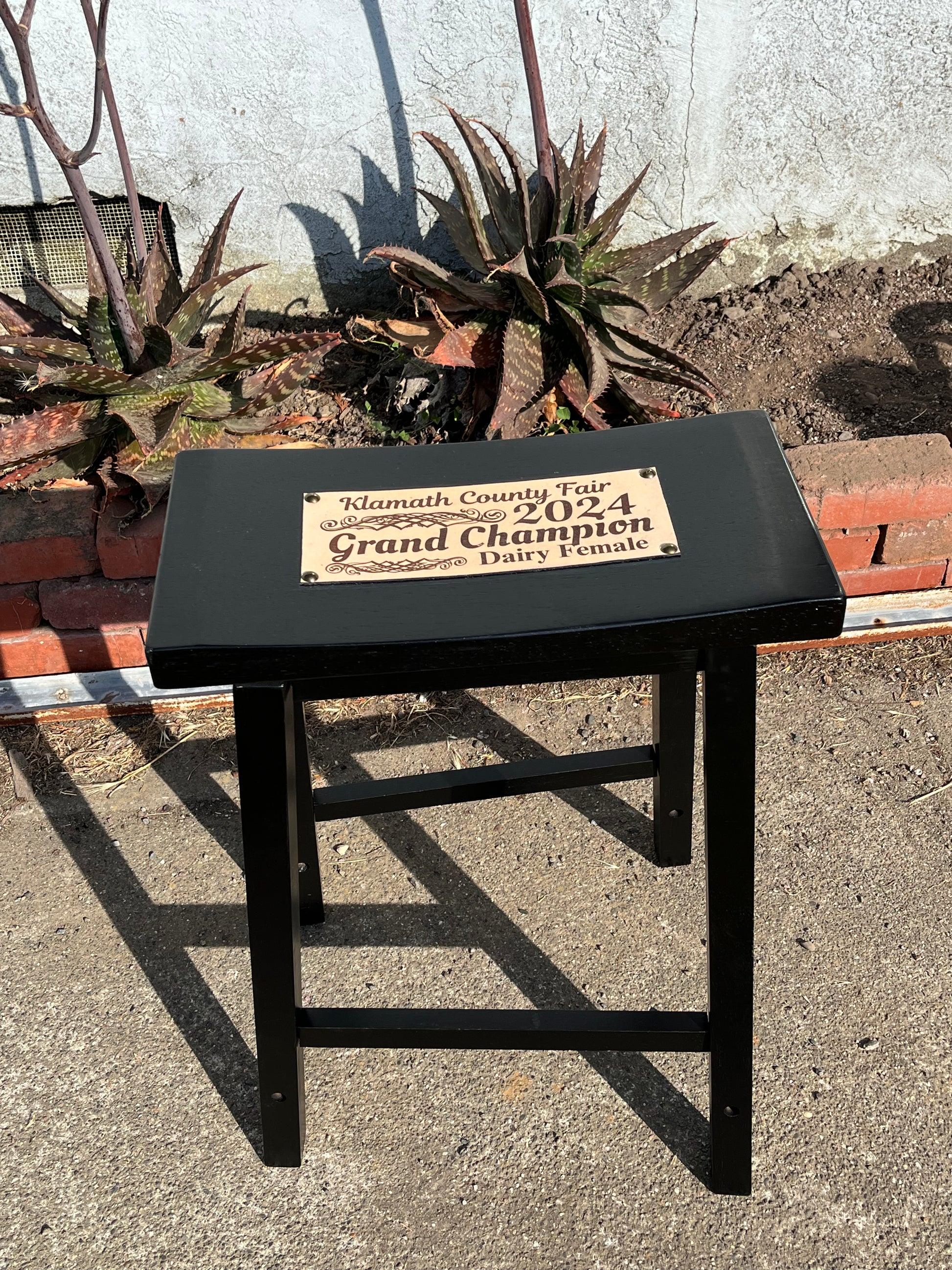 These wooden stool awards feature a leather patch that can be personalized with laser engraving to include names, dates, or logos. They make a unique and memorable keepsake for livestock shows, competitions, or special events.