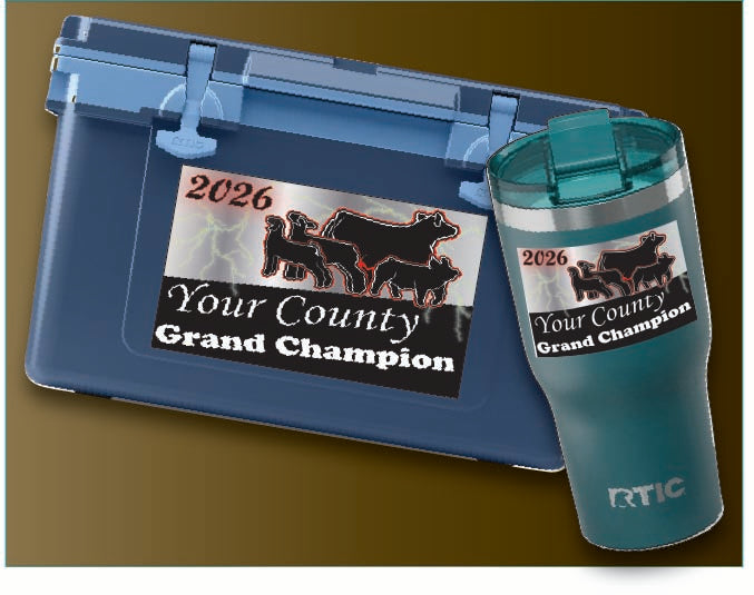 Custom decals great for livestock awards for on feed scoops, buckets, coolers, speakers, trailers, show boxes, and more.